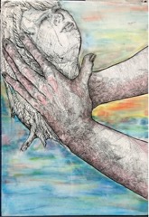 生命の誕生は海と言われており、その2人も再びこの世に生まれるために、再び結ばれるために海へ溶けあったのではないかなと私は解釈しました。そのため、命が生まれた場所へ帰り、もう一度生を受けるという意を込めて、タイトルを海へ還る、としました。帰るではなく還るの字にしたのはもう一度、再びといった繰り返しの意味を入れたかったからです。