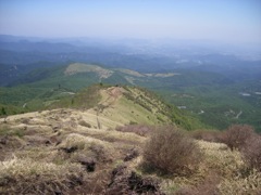 1445段の階段を過ぎて競り上がっていく稜線の先の頂上を振り仰ぎながら、熊笹に覆われた緩斜面をゆっくりと登っていく。