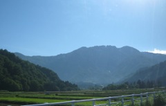 7時10分に六日町ICを出て、田んぼの間を8km走って八海山ロープウェイ駅に到着。正面に鋸刃のような八ツ峯が我々を手招く。