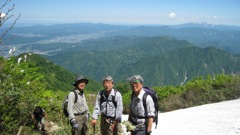 かなりきつい山行ではあったが、無風快晴の穏やかな1日に新緑と雪景色を満喫できた。