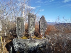 そこからは、アップダウンが続き、痩せ尾根あり、岩場のチェーン場所が数か所あり、結構体力を使いました。10:00には鈴ケ岳頂上に着きました。途中道の傍に幣束が所どころありました。頂上には、鈴嶽山神社、赤城山神社、愛宕山神社の山岳信仰の石碑が鎮座しているのを見ると、幣束があったのもうなずけました。到着時間が早かったので、20分ほどここで休憩して下山を開始しました。